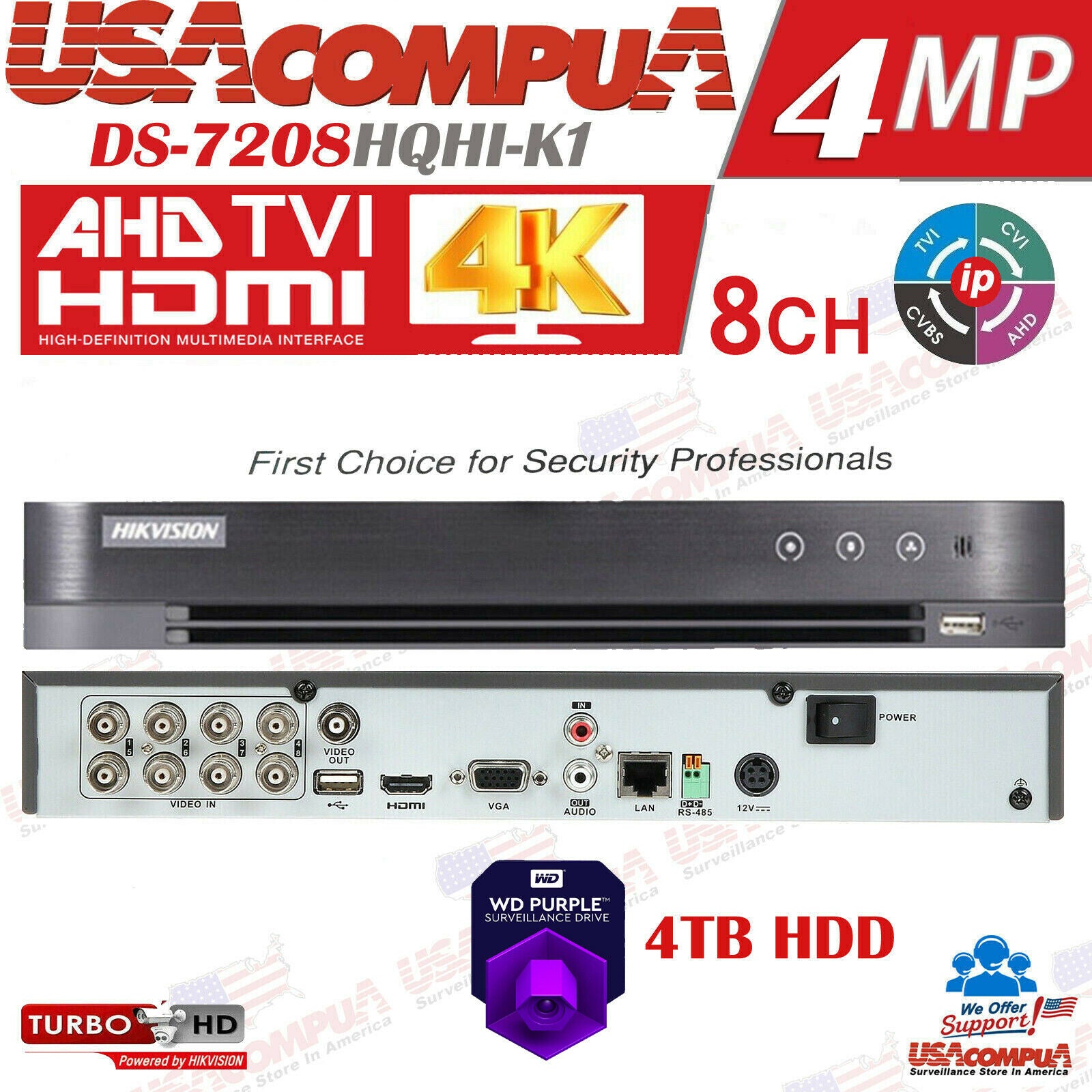 DS-7208HGHI-K1 HIKVISION 8CH DVR 8 CHA NNEL4MP HD-TVI + 4CH IP H.265+