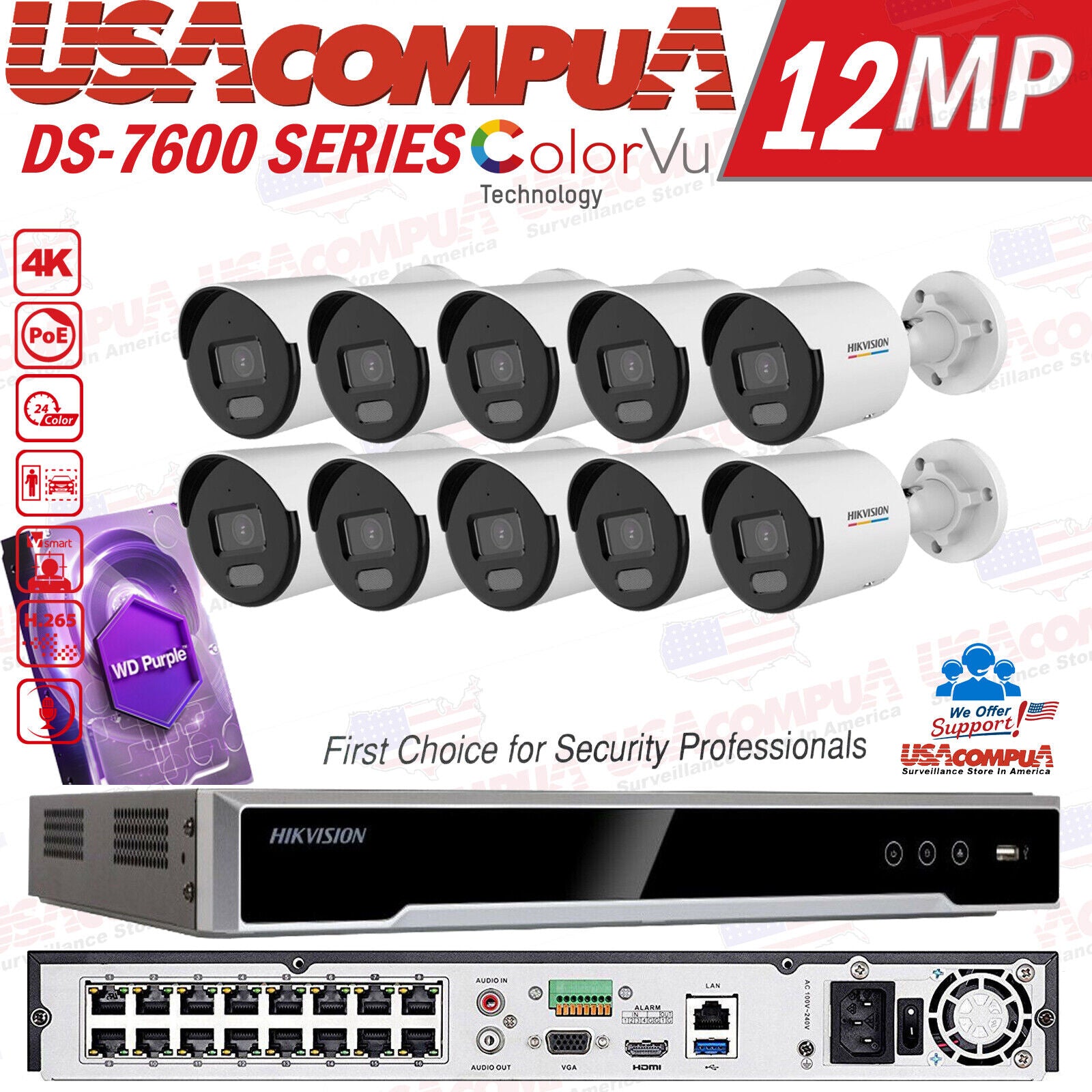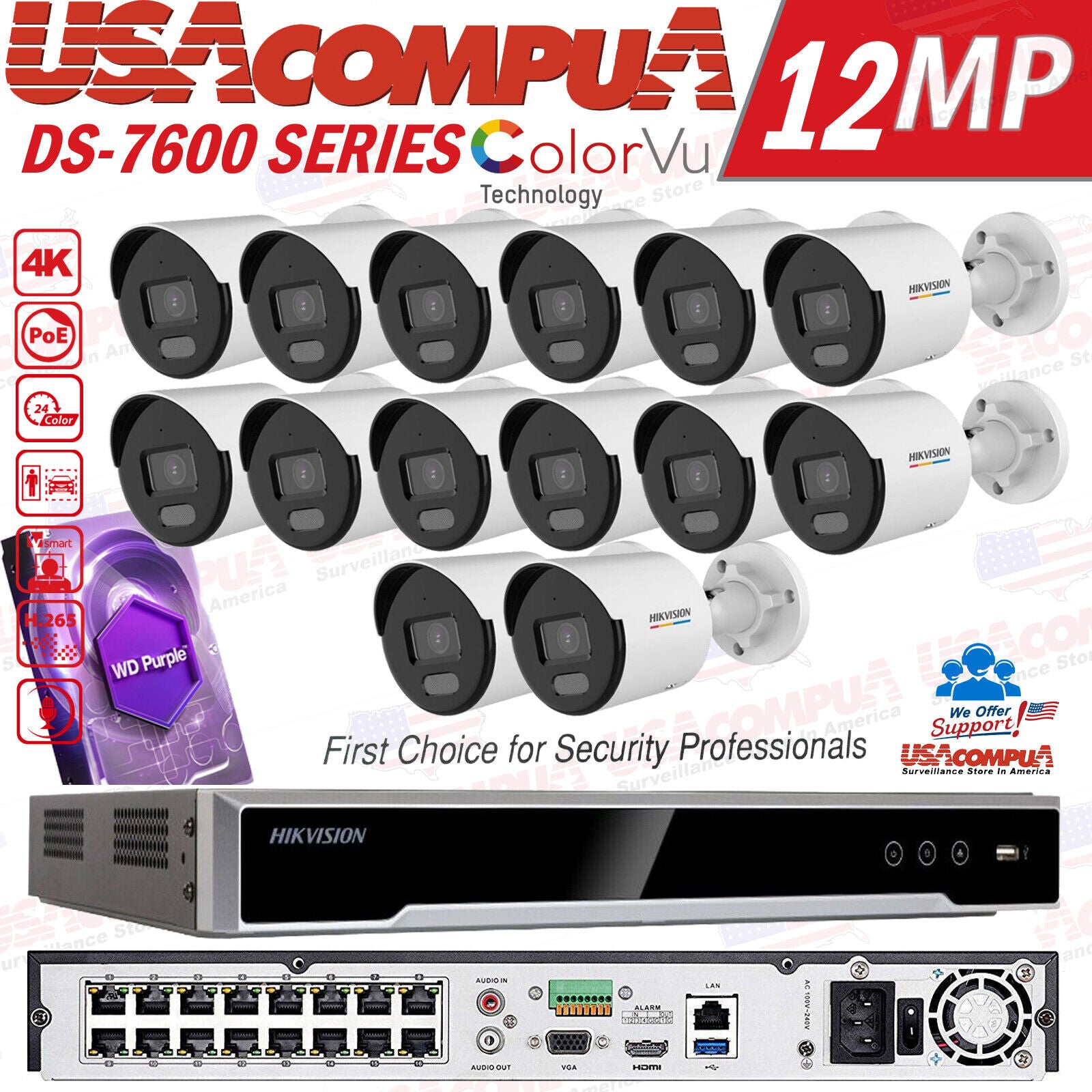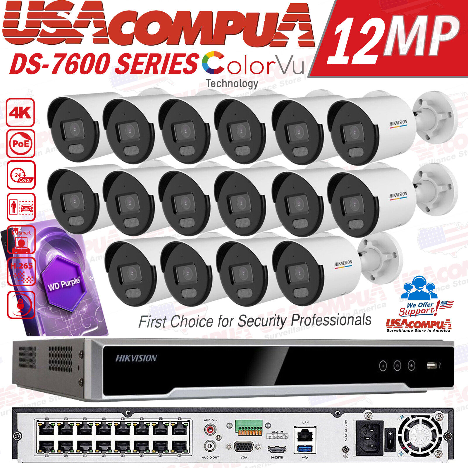Hikvision 16CH 12MP Security Camera System CCTV 4TB 4MP Bullet ColorVu W/Audio