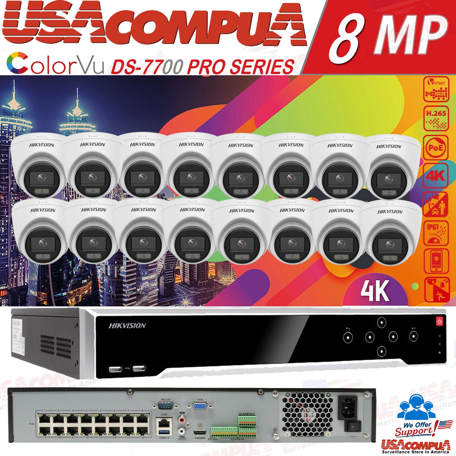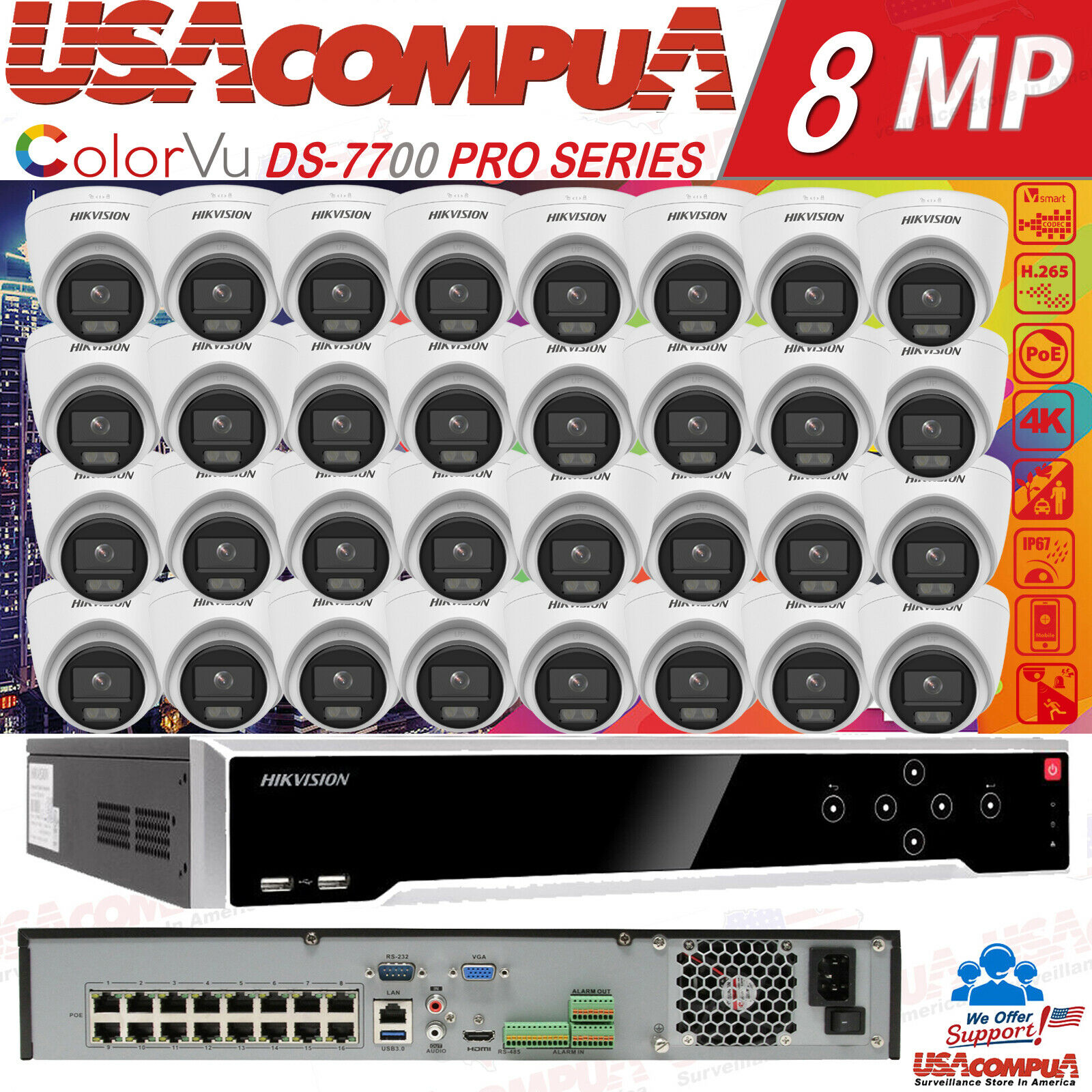 Hikvision 2MP 32CH 4K NVR System DS-2CD1327G0-L & DS-7732NI-K4/16P KIT/LOT