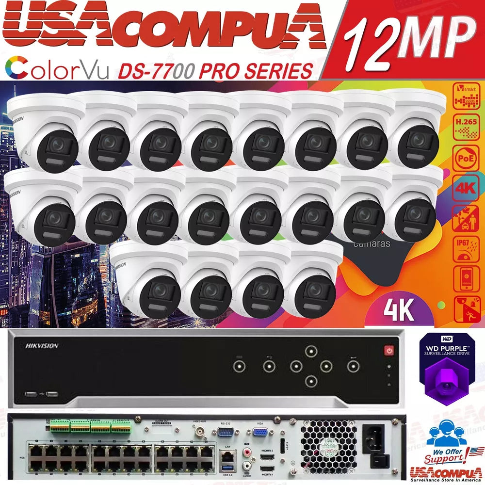 HIKVISION 32CH 4K 12MP 16TB SECURITY CAMERA 24POE TURRET COLORVU TWO WAY AUDIO