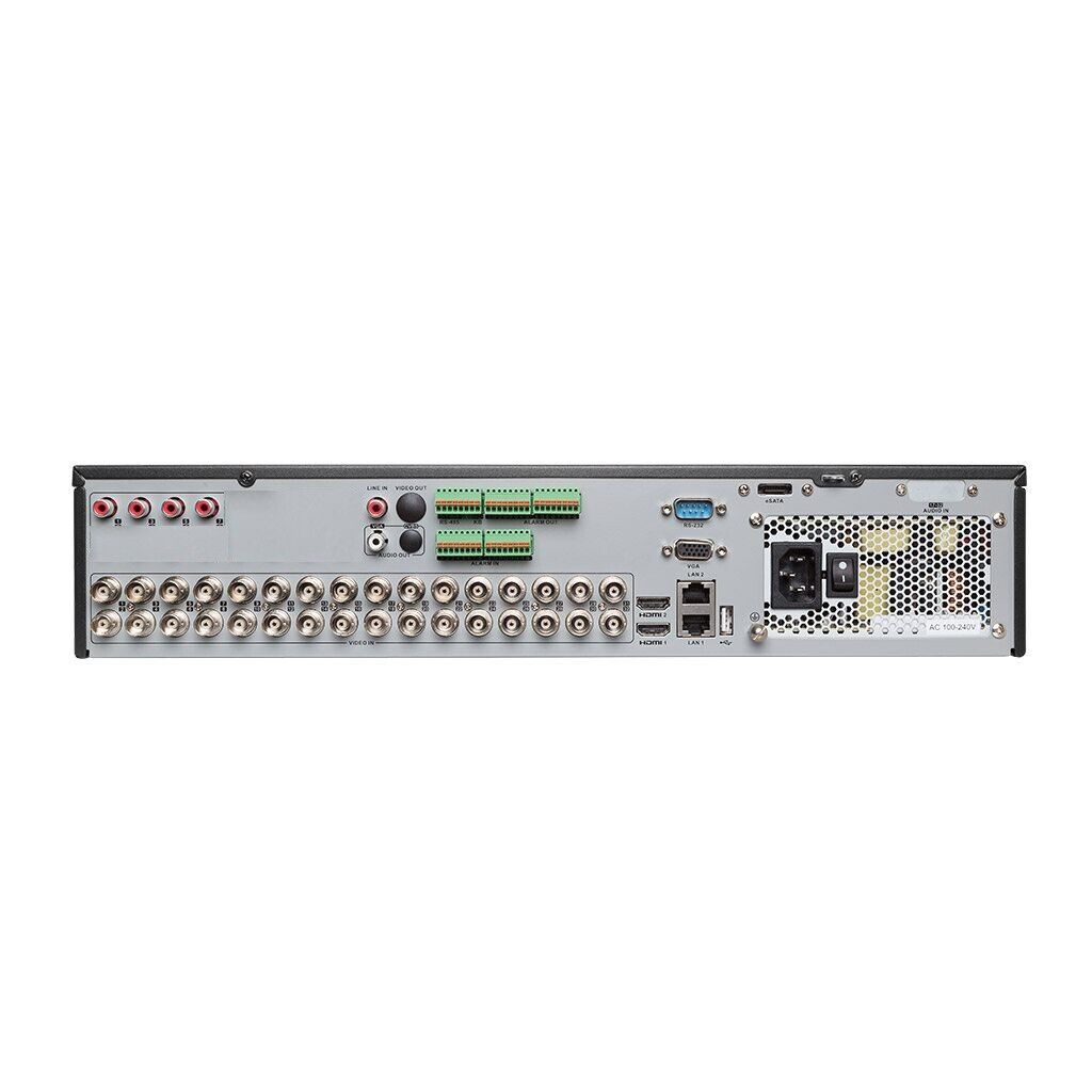 It supports 32 analog channels, and up to 64 network (IP) camera inputs.