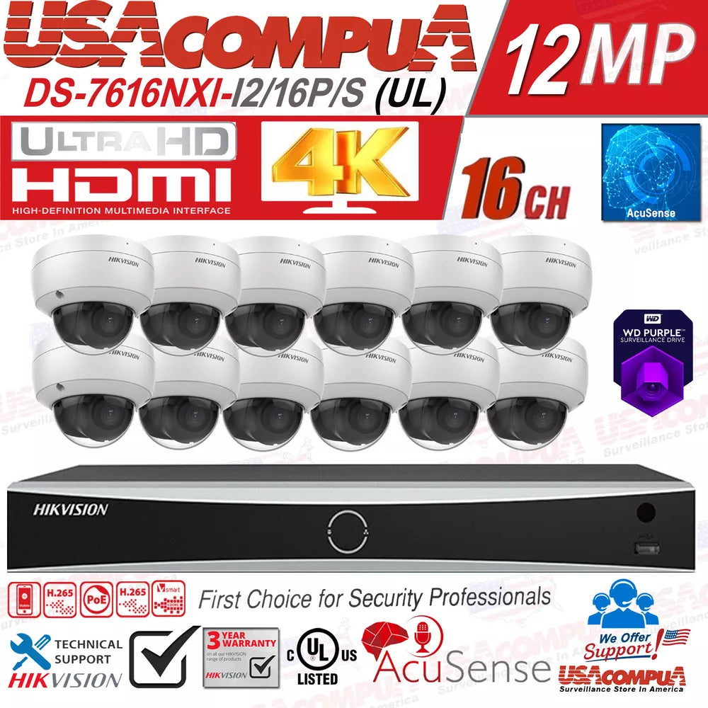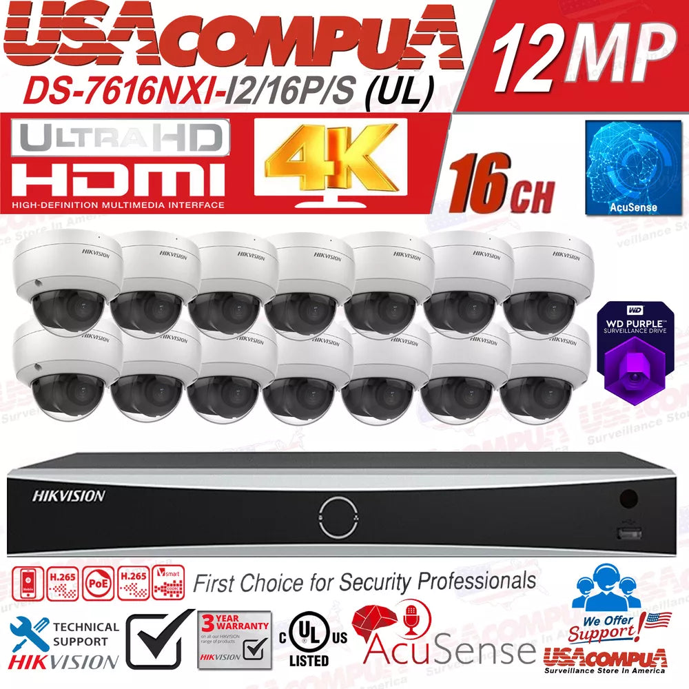 Hikvision 4K 16CH 12MP IP Security Camera System Domo DarkFigther 4TB