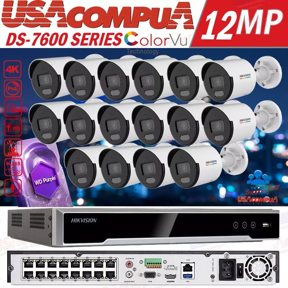 Hikvision 4K 16CH IP Camera System Home Security W/4MP Bullet ColorVu W/Audio