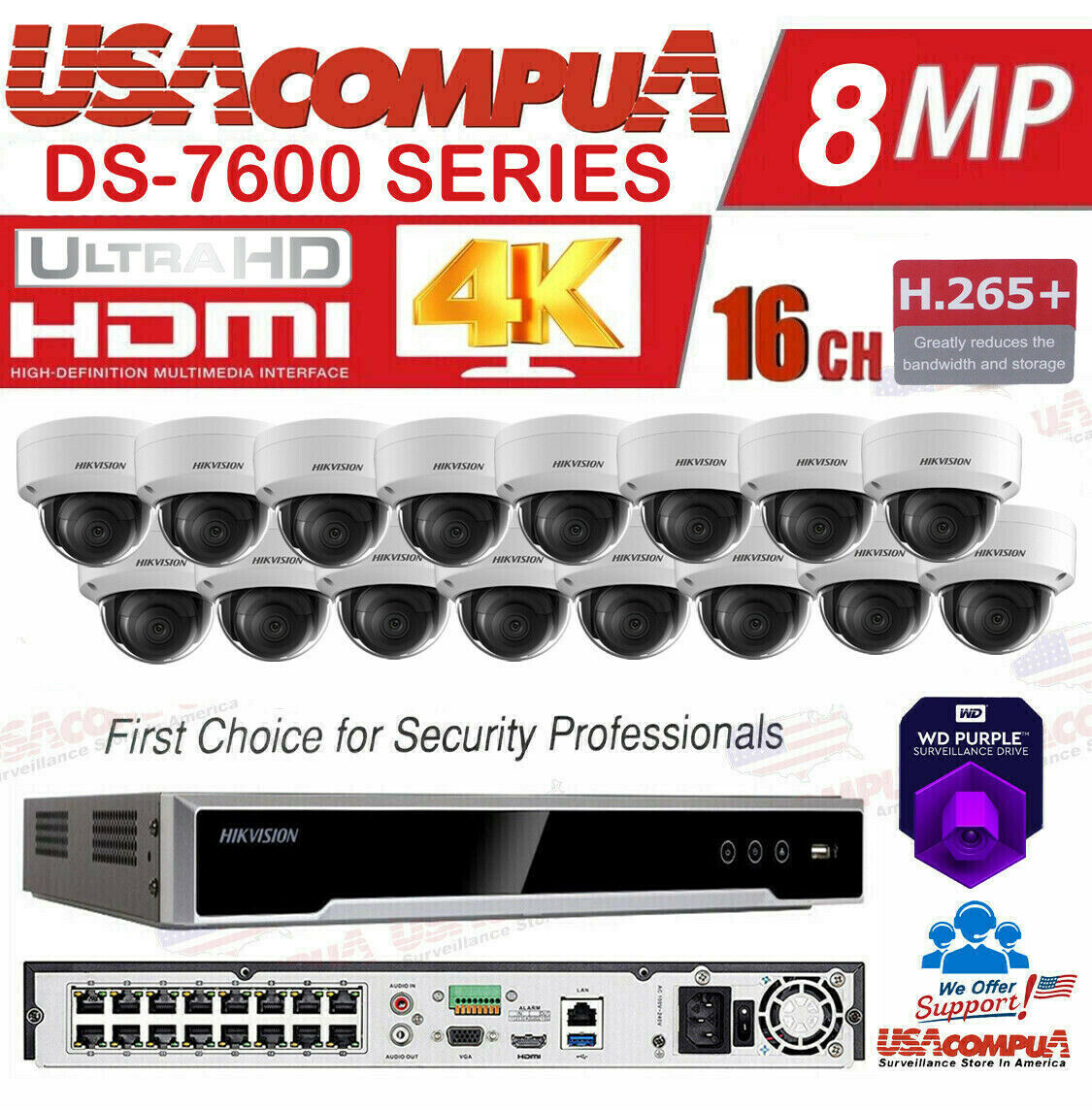 Hikvision 4K 16CH PoE Security Camera System 4MP KIT CCTV Vandal Proof Lot