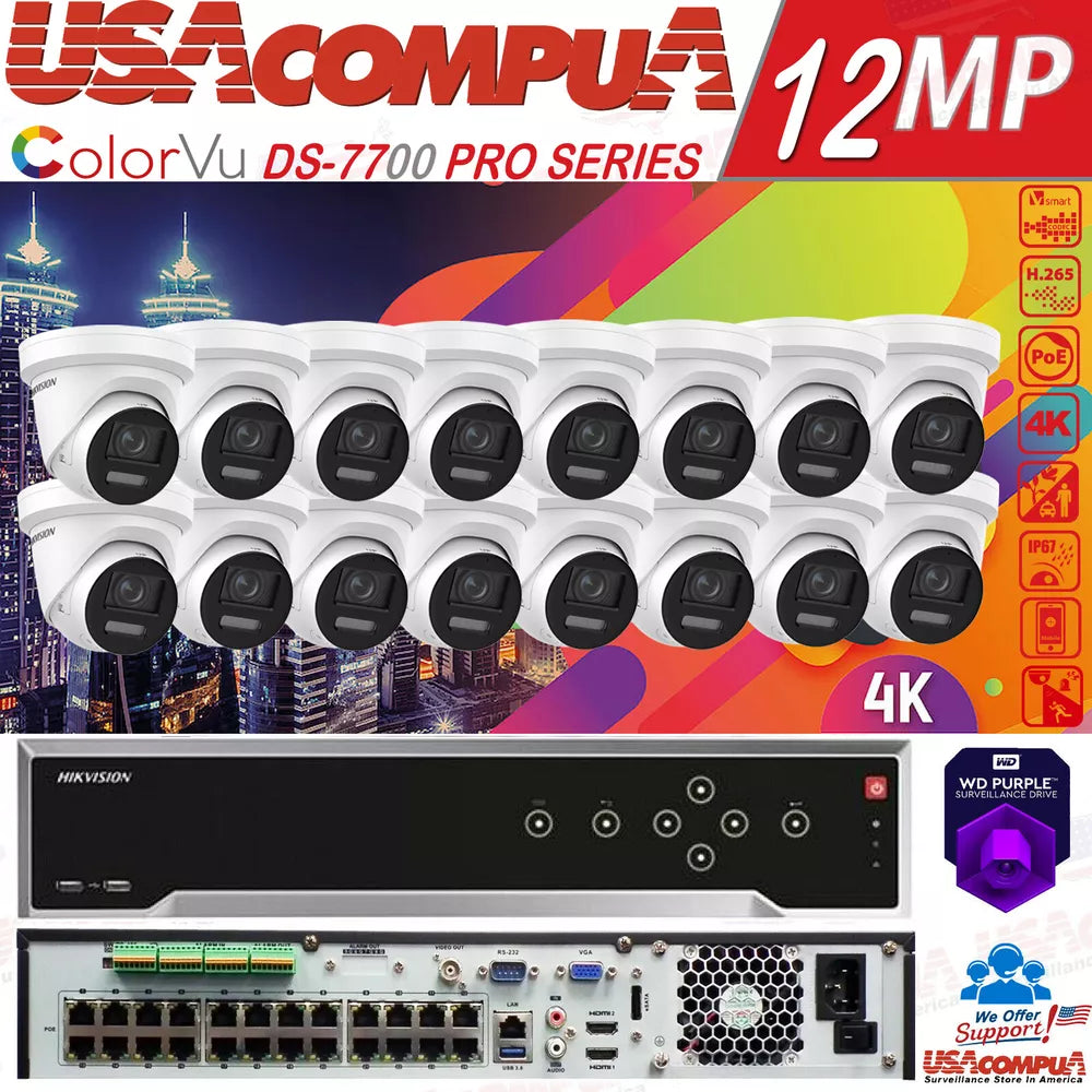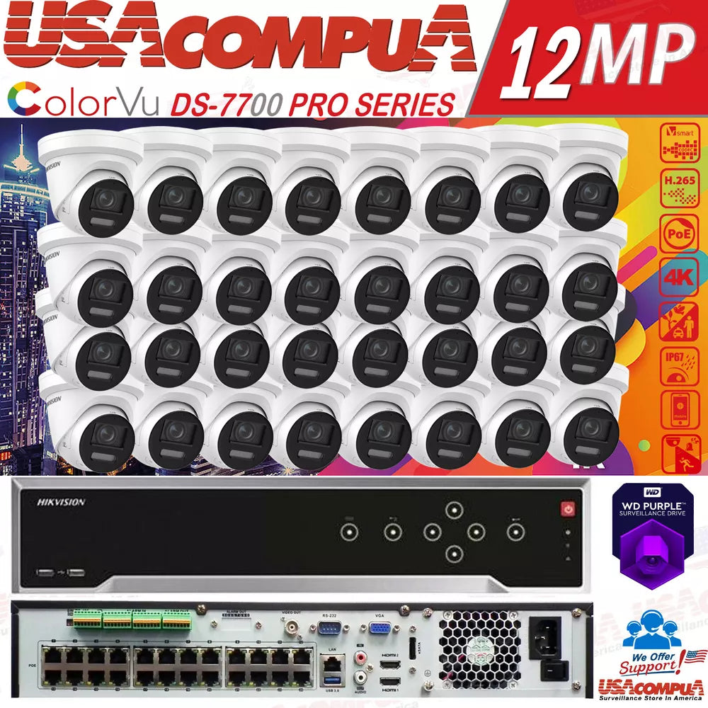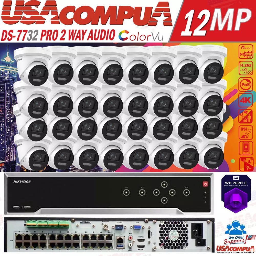 HIKVISION 4K 32CH 12MP CCTV IP SECURITY CAMERA 24 PoE TURRET COLORVU 2 WAY AUDI