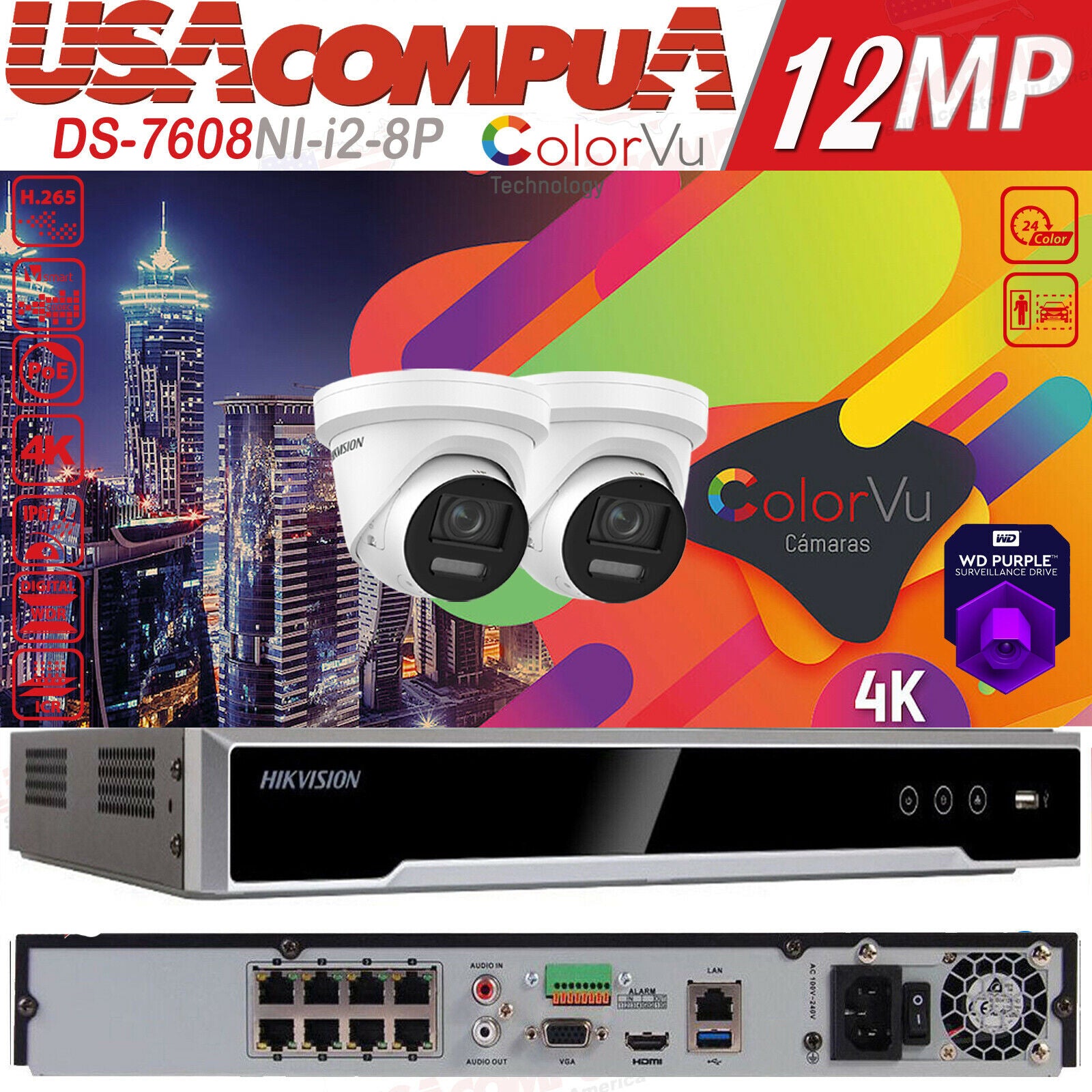 Hikvision 4K 8CH Security Camera System 12MP 8 POE ColorVu 2 Way Audio G2 Lot