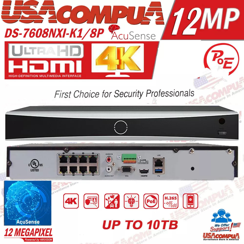 Hikvision 4K 8POE NVR 8CH IP Camera System DS-2CD1047G0-LUF 4MP ColorVu lot