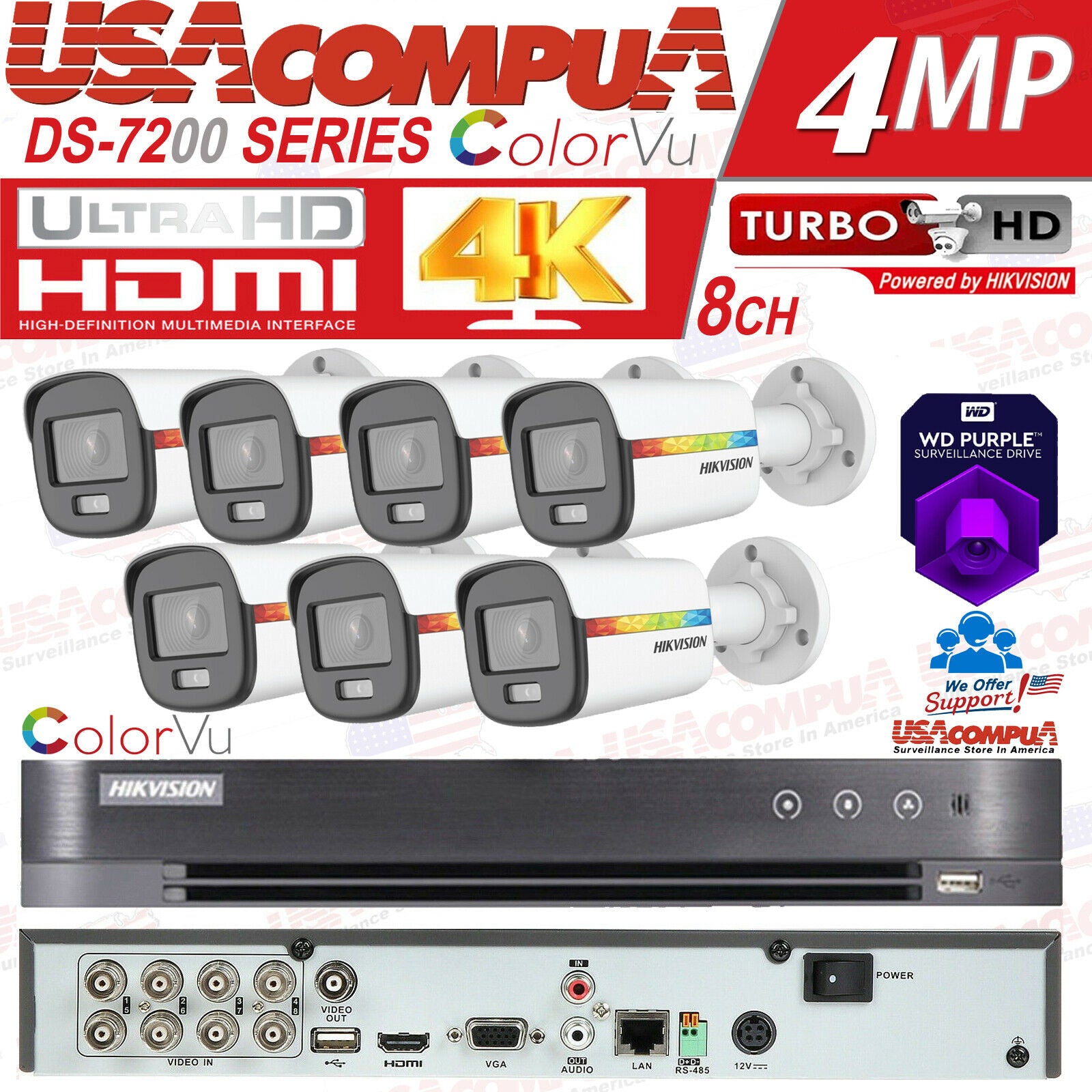 HIKVISION 4K Security Camera System CCTV Kit 8CH DVR W/ 1080P COLORVU