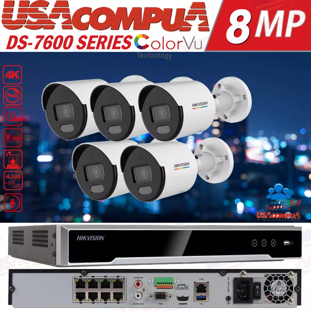 hikvision 8CH IP Camera System PoE DS-2CD1047G0-LUF 4MP ColorVu W/Audio