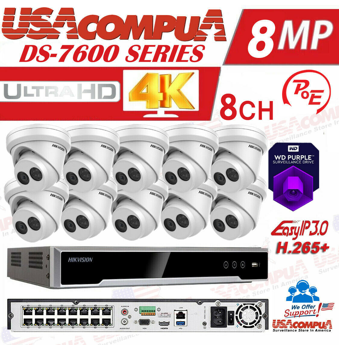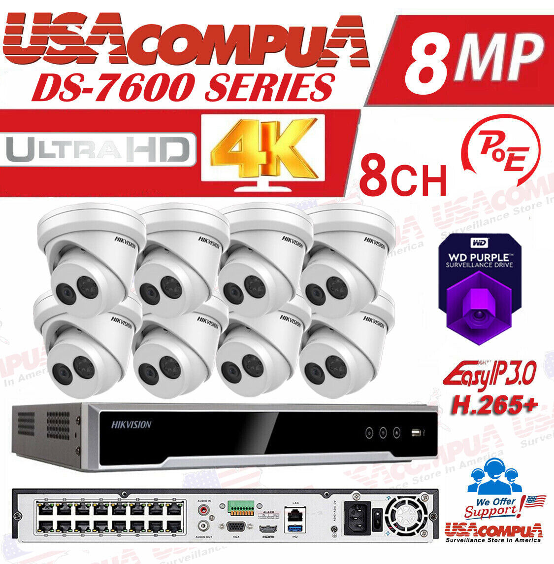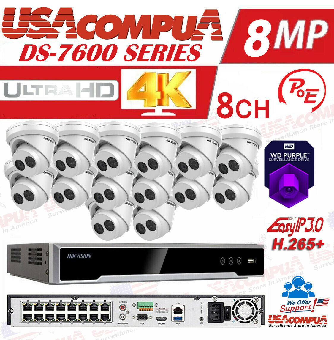HIKVISION DS-2CD2343G0-I & DS-7616NI-K2/16P 4MP KIT 4K-UHD NVR
