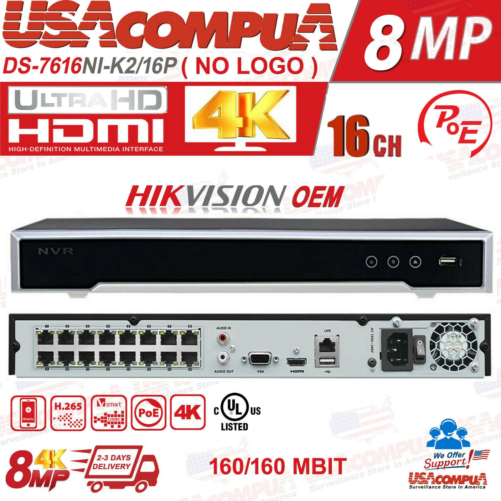 HIKVISION OEM NVR 16CH 16 POE 4K Channel security H.265 DS-7616NI-K2/16P (UL)