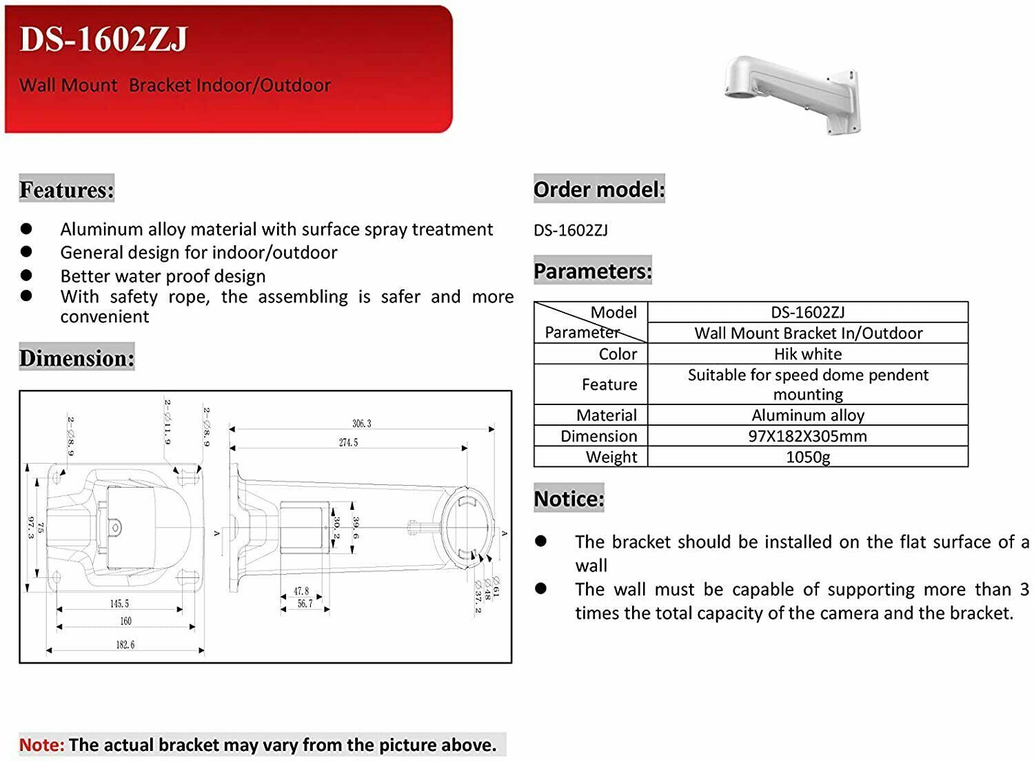 HIKVISION PTZ WALL MOUNT DS-1602ZJ Bracket Aluminium Alloy Original