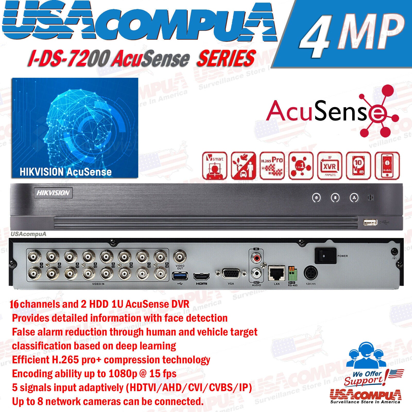 - 16chs and 2 HDDs 1U AcuSense DVR